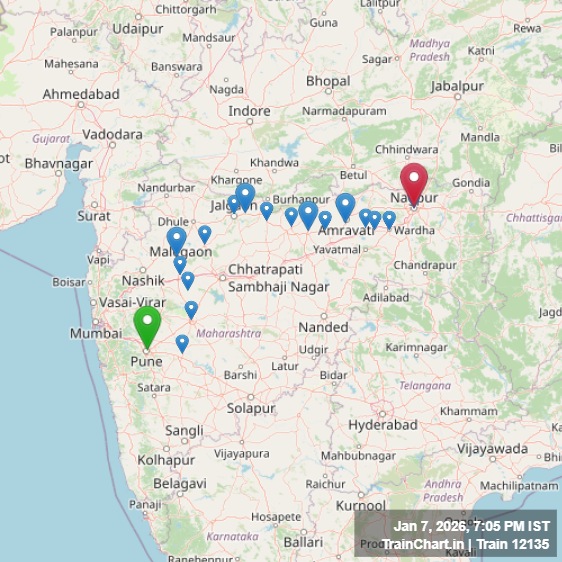 - Route: Pune JN (PUNE) to Nagpur JN (NGP).
